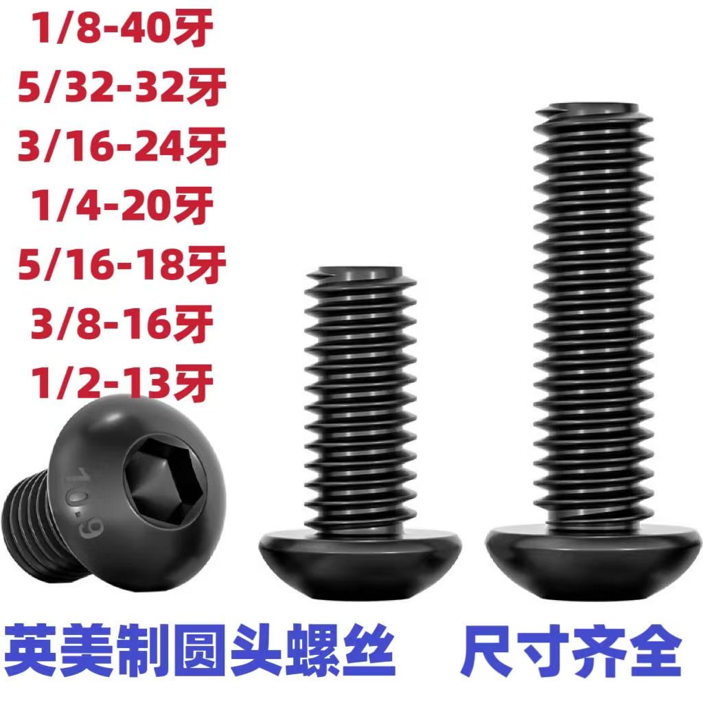 12.9级6#英国1/2内六角杯头螺钉1/4美国5/8螺栓10#5/16 3/8 7/1